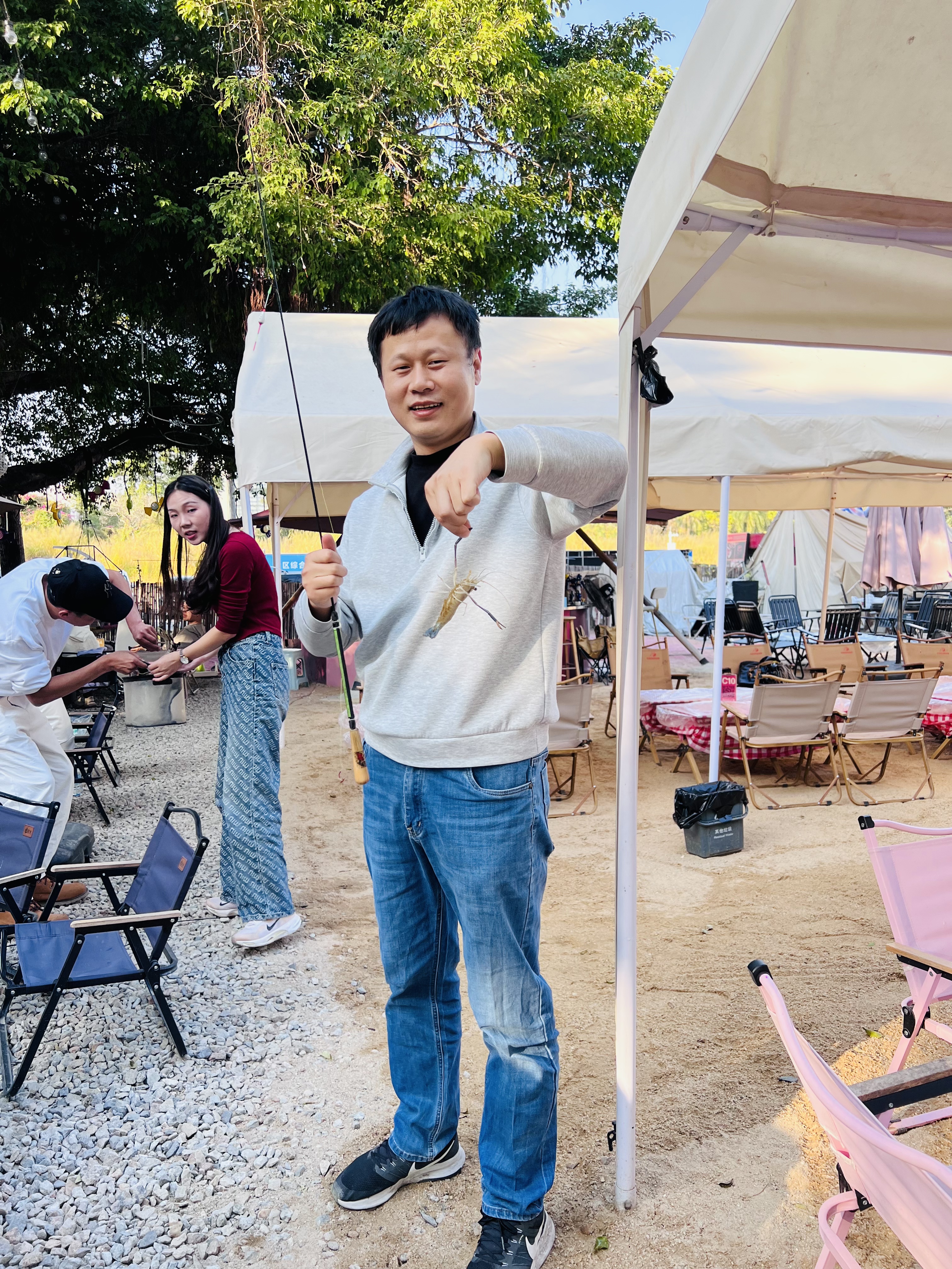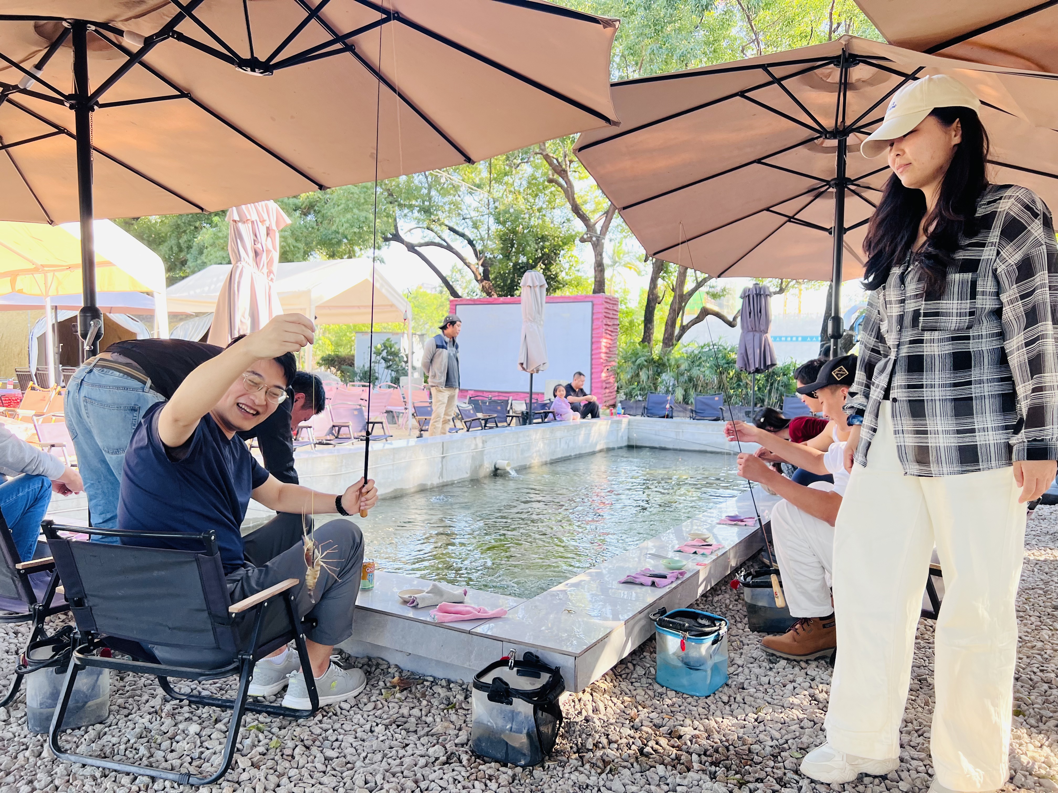 作为深圳校友会2025 年秋冬季度的核心活动,本次联谊以充满烟火气的 “钓虾大赛” 拉开帷幕。活动现场,有人屏息凝神等待虾群上钩,有人举着网兜欢呼“战利品”,新手向资深“钓手” 请教技巧,成功钓起鲜虾的校友分享着收获的喜悦,露营地内欢声笑语不断,瞬间拉近了不同毕业届次校友间的距离。