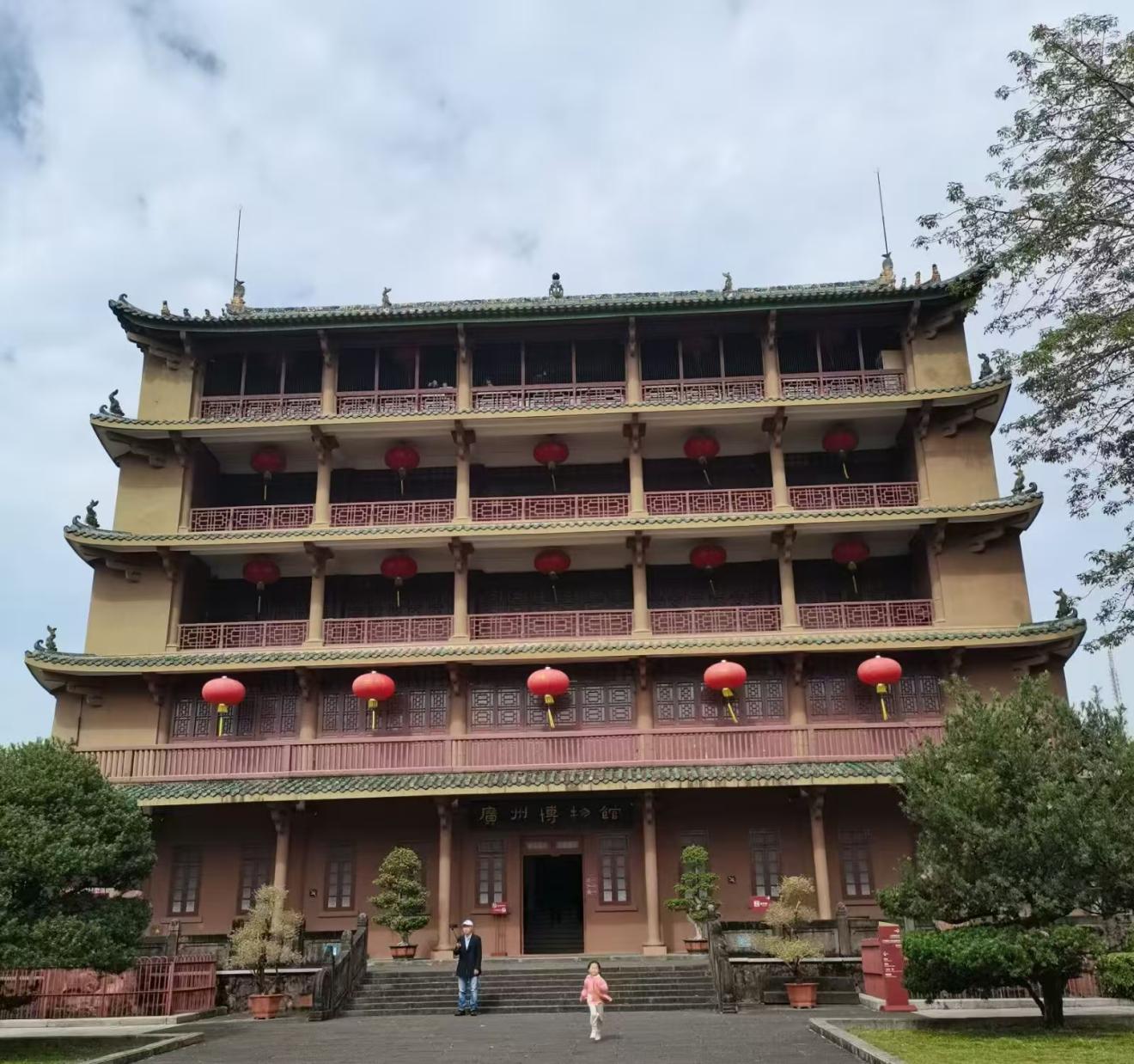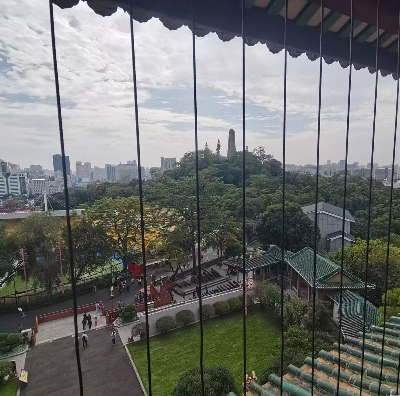 活动起点设于庄严肃穆的中山纪念堂,湛蓝琉璃瓦下的八角形建筑,以钢骨砖石承载着民国风云与家国情怀,校友们在此驻足仰望,在伟人精神的感召下拉开探寻之旅的序幕。沿中轴线向北前行,越秀山的宁静清幽洗去尘世喧嚣,山风仿佛裹挟着古战场的历史回响与古城墙的千年低语。登顶后,“岭南第一楼”镇海楼巍然矗立,校友们纷纷驻足拍照,楼内陈列的广州古城模型,让大家直观感受着城市的变迁与生长,更联想到母校三亚学院的蓬勃发展历程。