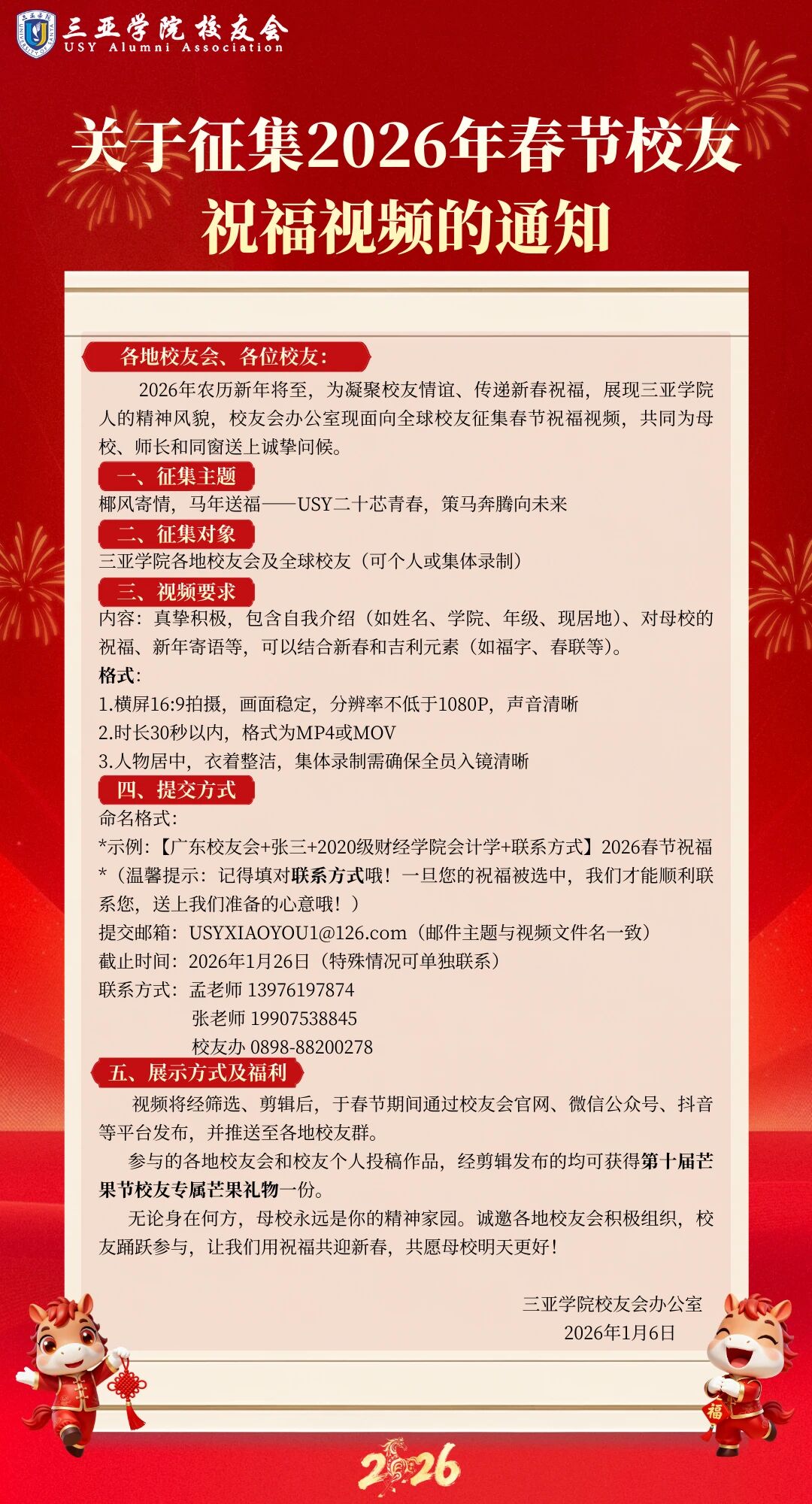 关于征集2026年春节校友祝福视频的通知