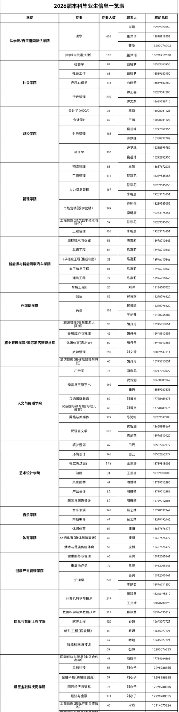 2026届毕业生信息一览表